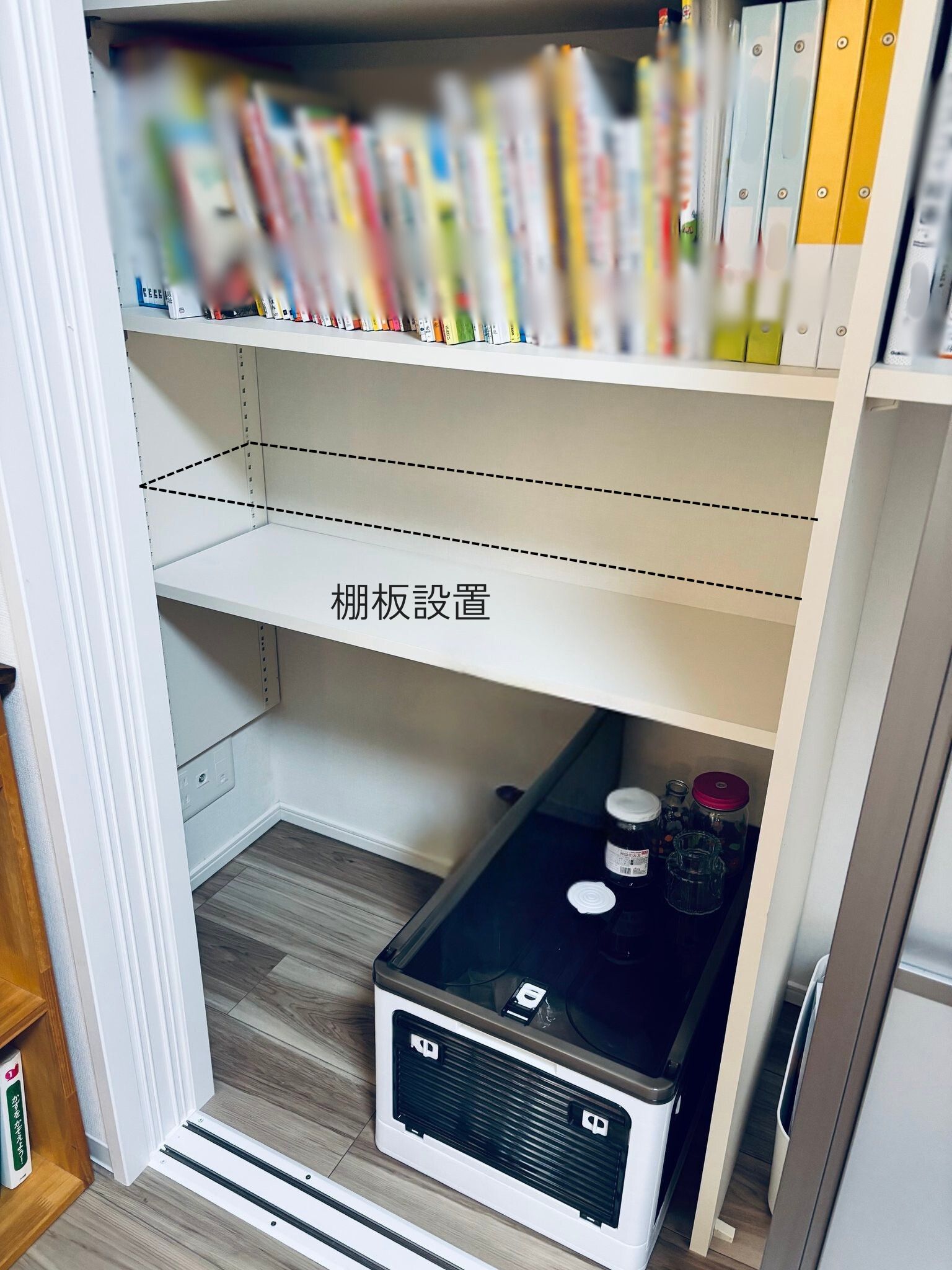 今回の計画で棚板を追加する前提で高さを調整(工務店さん工事は後日)。 -